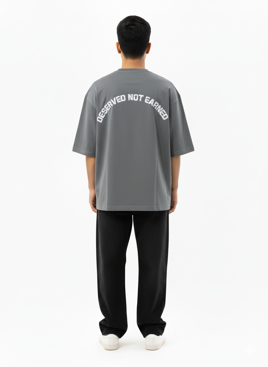 More than a fit — it’s a mindset. Crafted from premium heavyweight cotton, this oversized tee blends comfort with quiet confidence. The front showcases a hand-drawn design, while the bold back print declares DESERVED NOT EARNED — a reminder that your worth doesn’t need validation. Made for those who move differently, think deeper, and live with purpose.